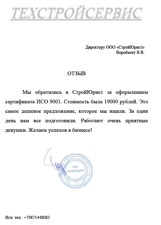 Отзывы клиентов "СтройЮрист" по ISO в Волгограде