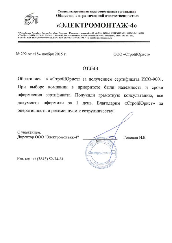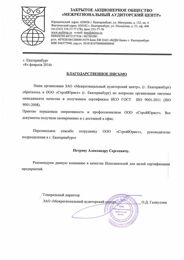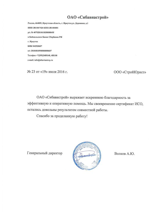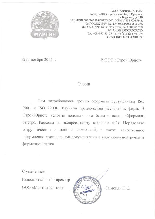 Отзывы клиентов "СтройЮрист" по ISO в Волгограде